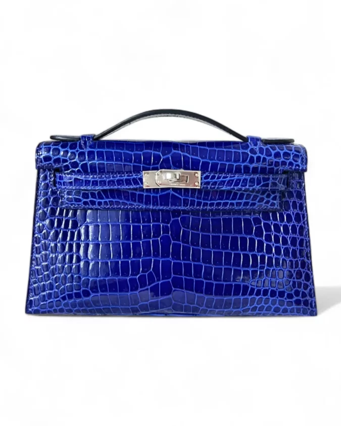Pochette Mini Kelly Aligator Bleu Electrique PHW