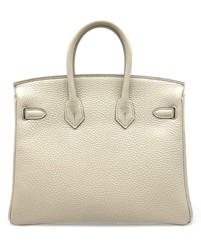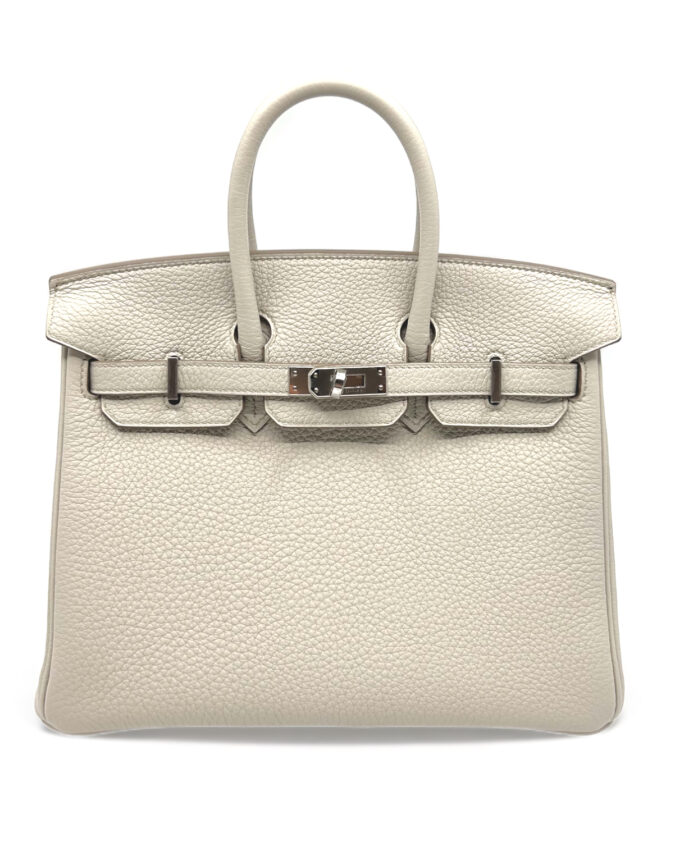CHF 15,000.00Birkin 25 en cuir Epsom Béton, finitions palladium. Minimalisme raffiné. Ce Birkin 25 se décline en cuir Epsom, soulignant les lignes nettes de sa silhouette par sa structure ferme et légère. La teinte Béton, un gris clair moderne aux nuances minérales, est sublimée par des finitions palladium pour un rendu épuré et contemporain. Une pièce ultra-désirable dans une palette neutre sophistiquée.
