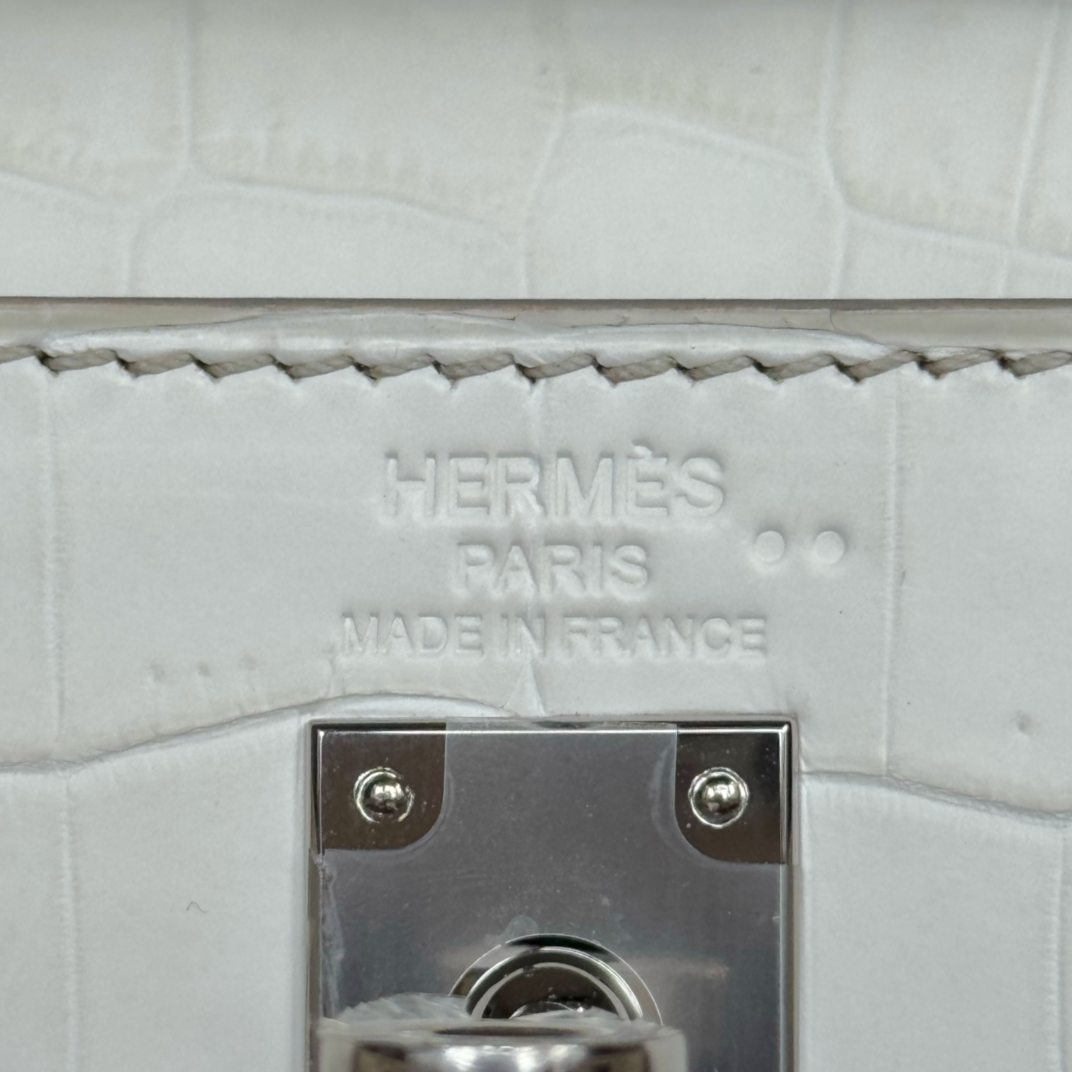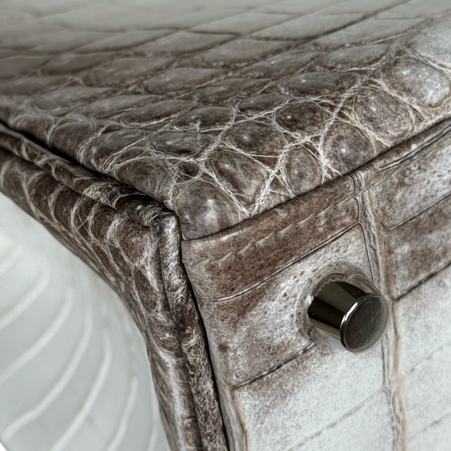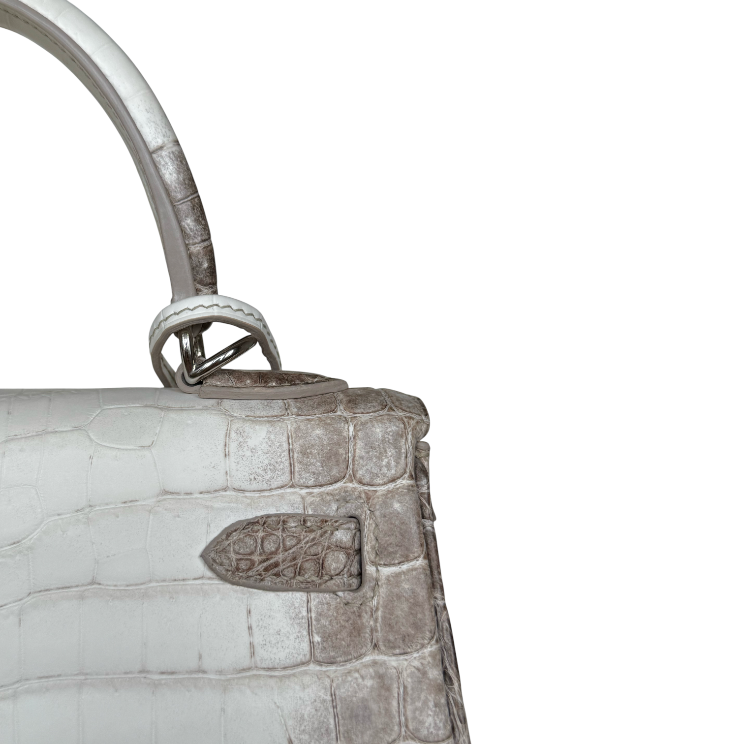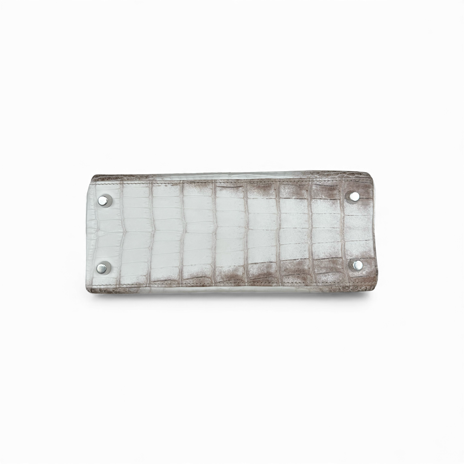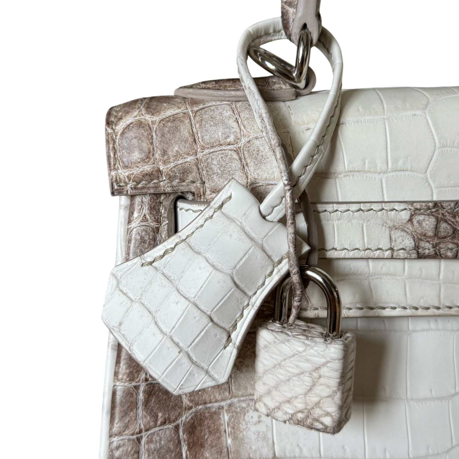 Véritable graal de la collection Hermès, le Kelly 25 Himalaya incarne l’apogée du savoir-faire artisanal et du luxe absolu. Réalisé en crocodile Niloticus, ce cuir exotique d’exception se distingue par son dégradé naturel mythique, allant du beige ivoire lumineux au gris perlé délicat, évoquant les neiges éternelles de l’Himalaya.