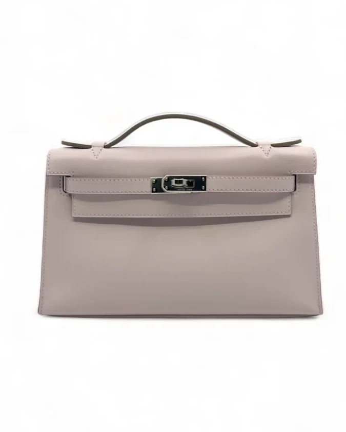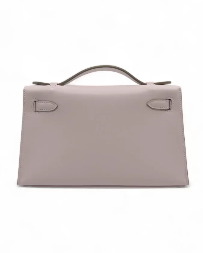 La bijouterie dorée (GHW) vient sublimer ce ton raffiné avec une touche chaleureuse et féminine. Compact mais spacieux, le Kelly Pochette peut être porté à la main ou glissé sous le bras, apportant une allure sophistiquée à toutes les tenues, du jour au soir.