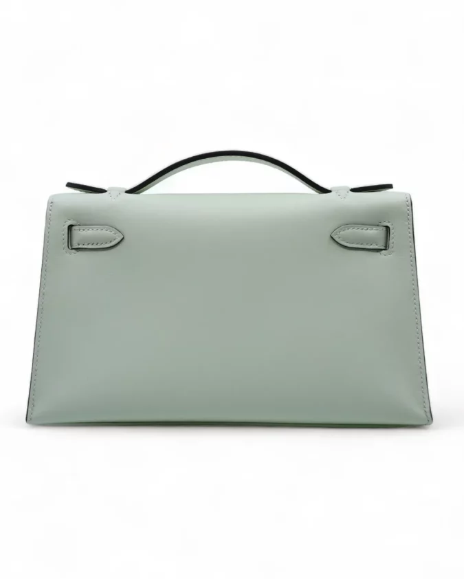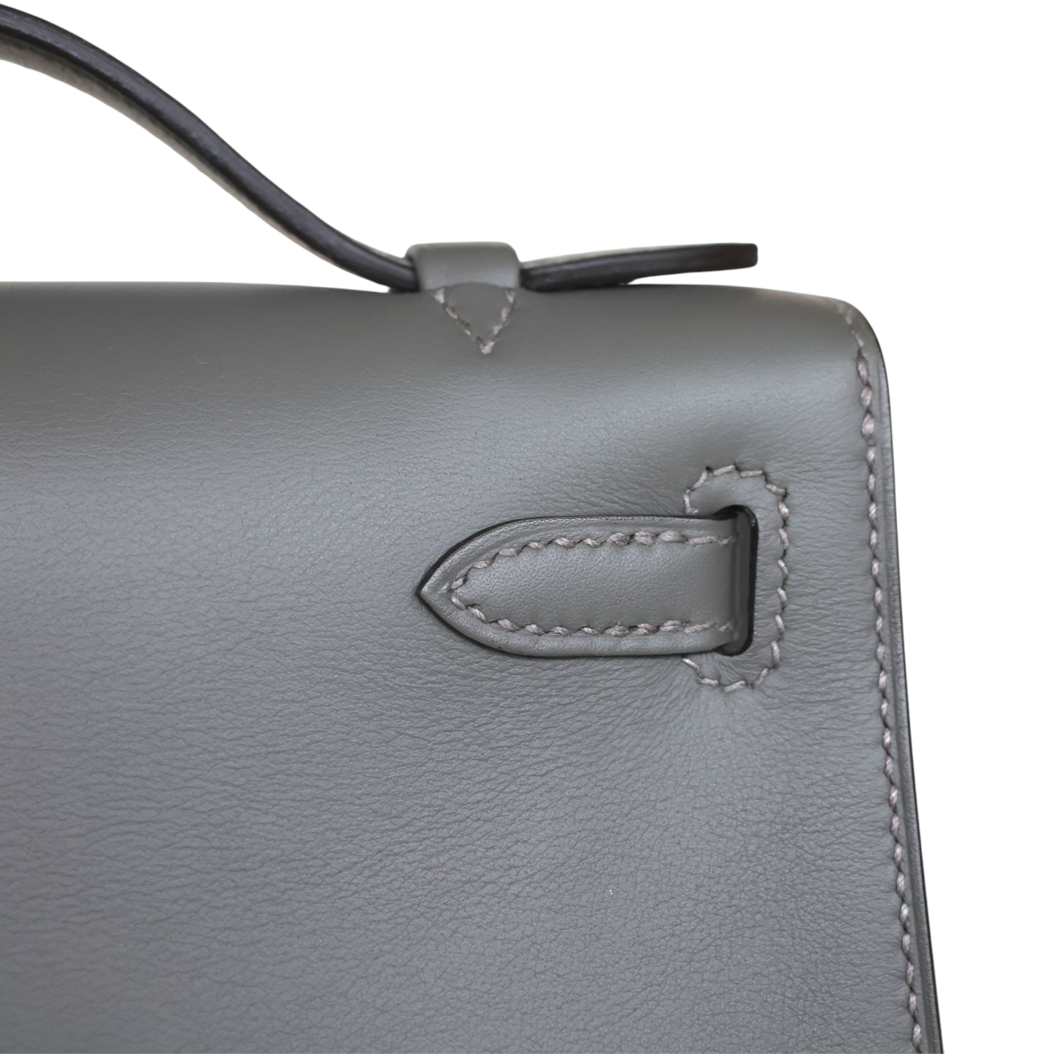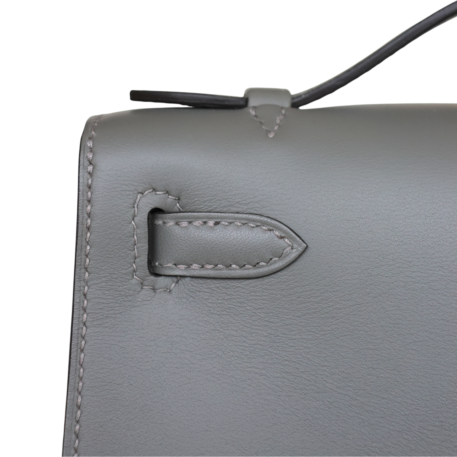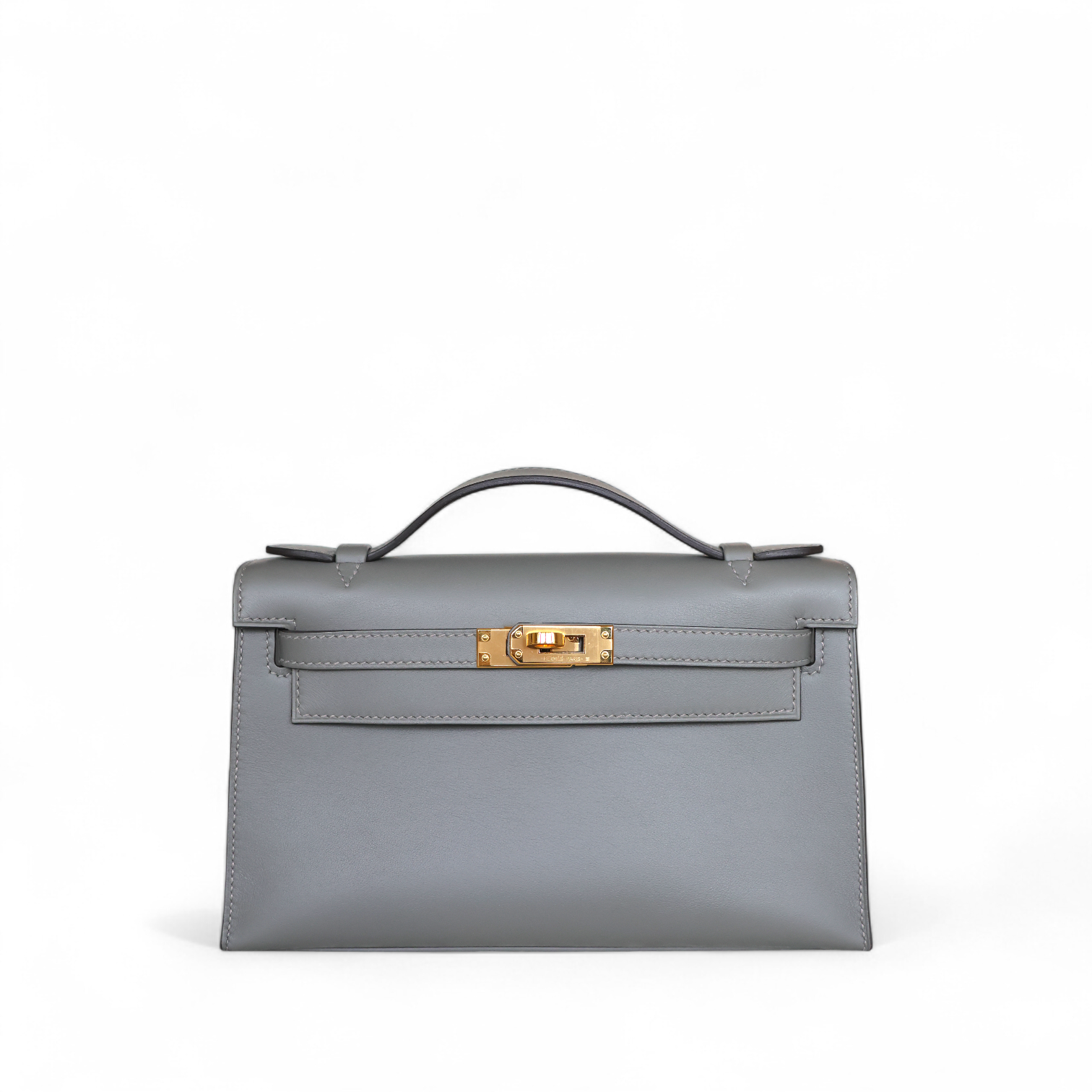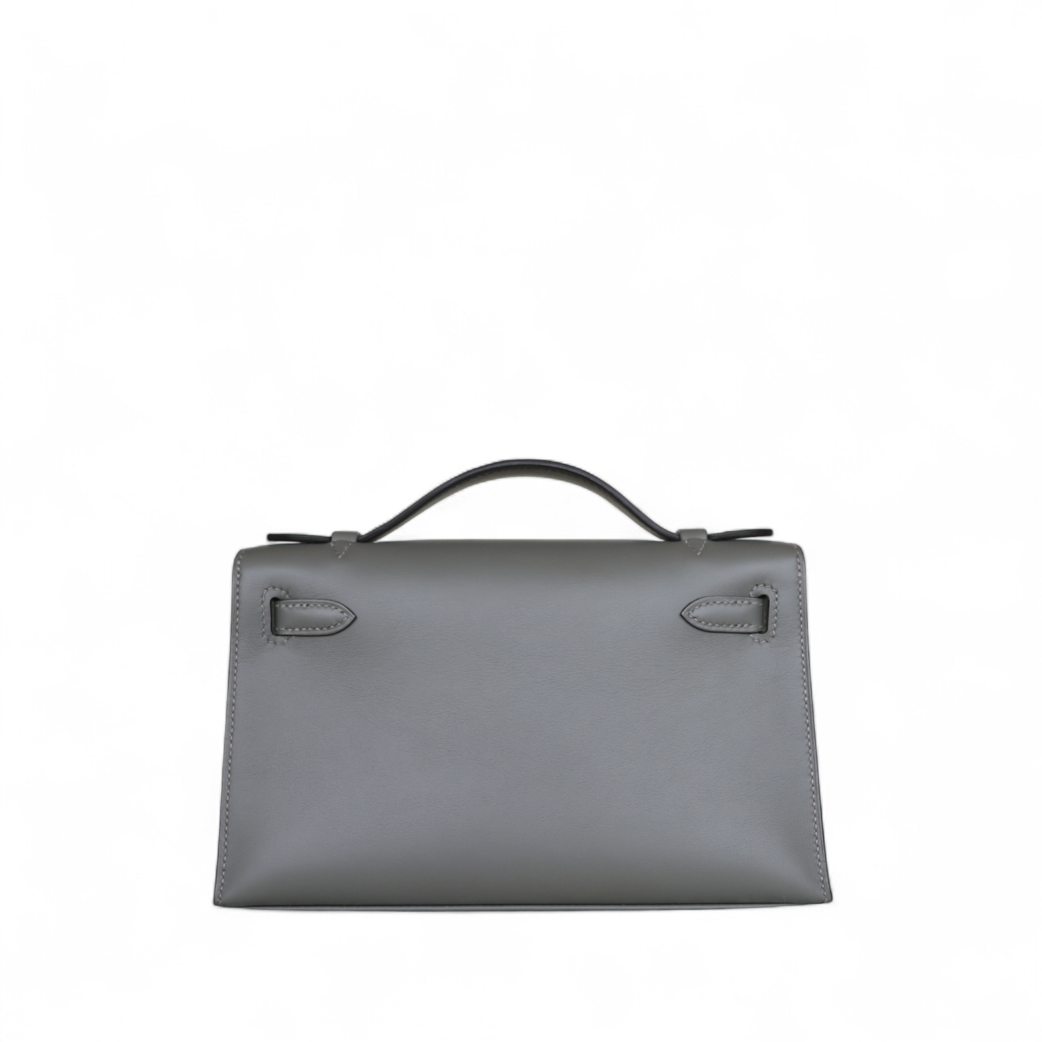 Élégance et modernité se rencontrent dans ce superbe Kelly Pochette, incarnation du chic minimaliste signé Hermès. Réalisé en cuir Swift, reconnu pour sa souplesse et son éclat soyeux, il se décline ici dans la nuance subtile Gris Meyer, un gris bleuté profond et contemporain, idéal pour toutes les saisons.