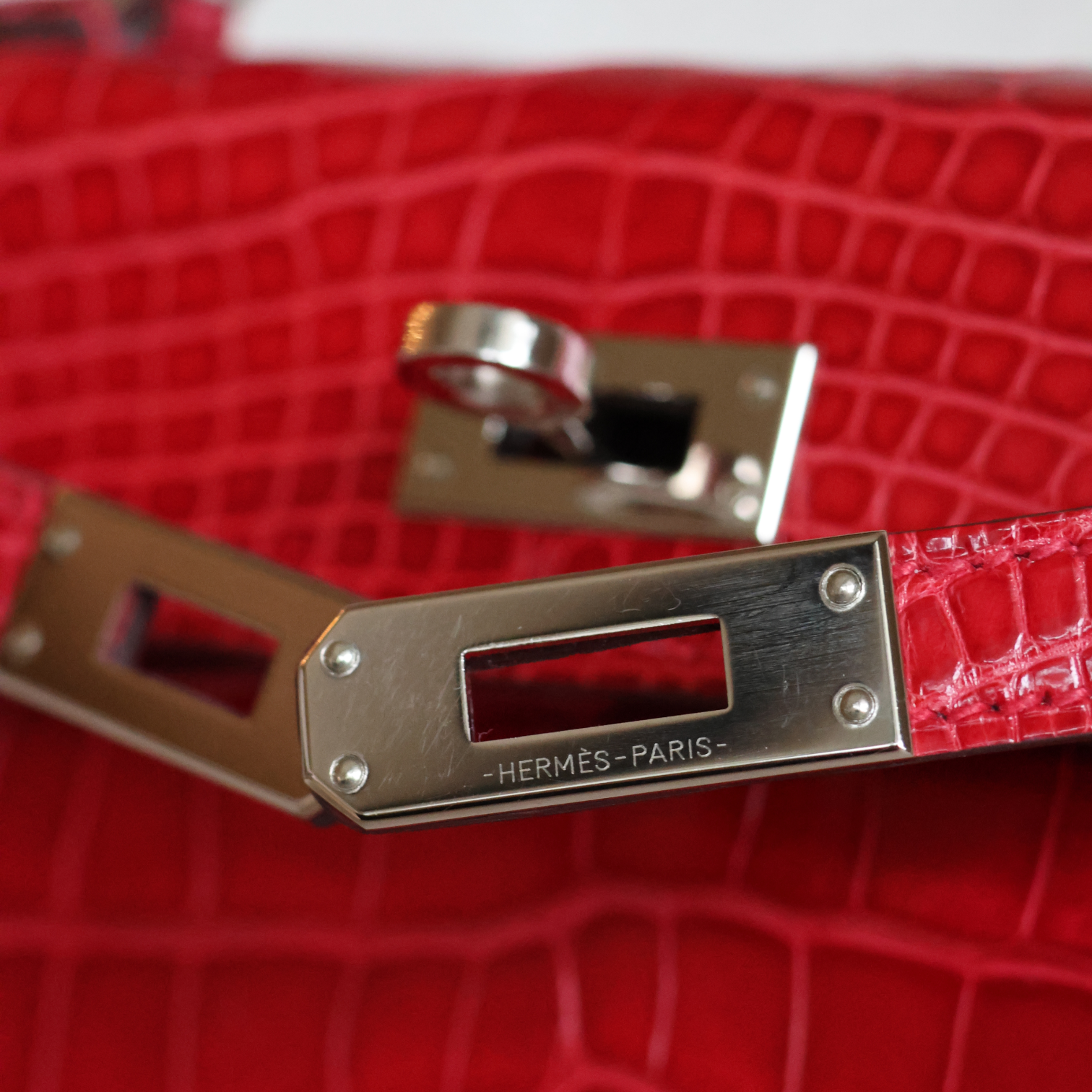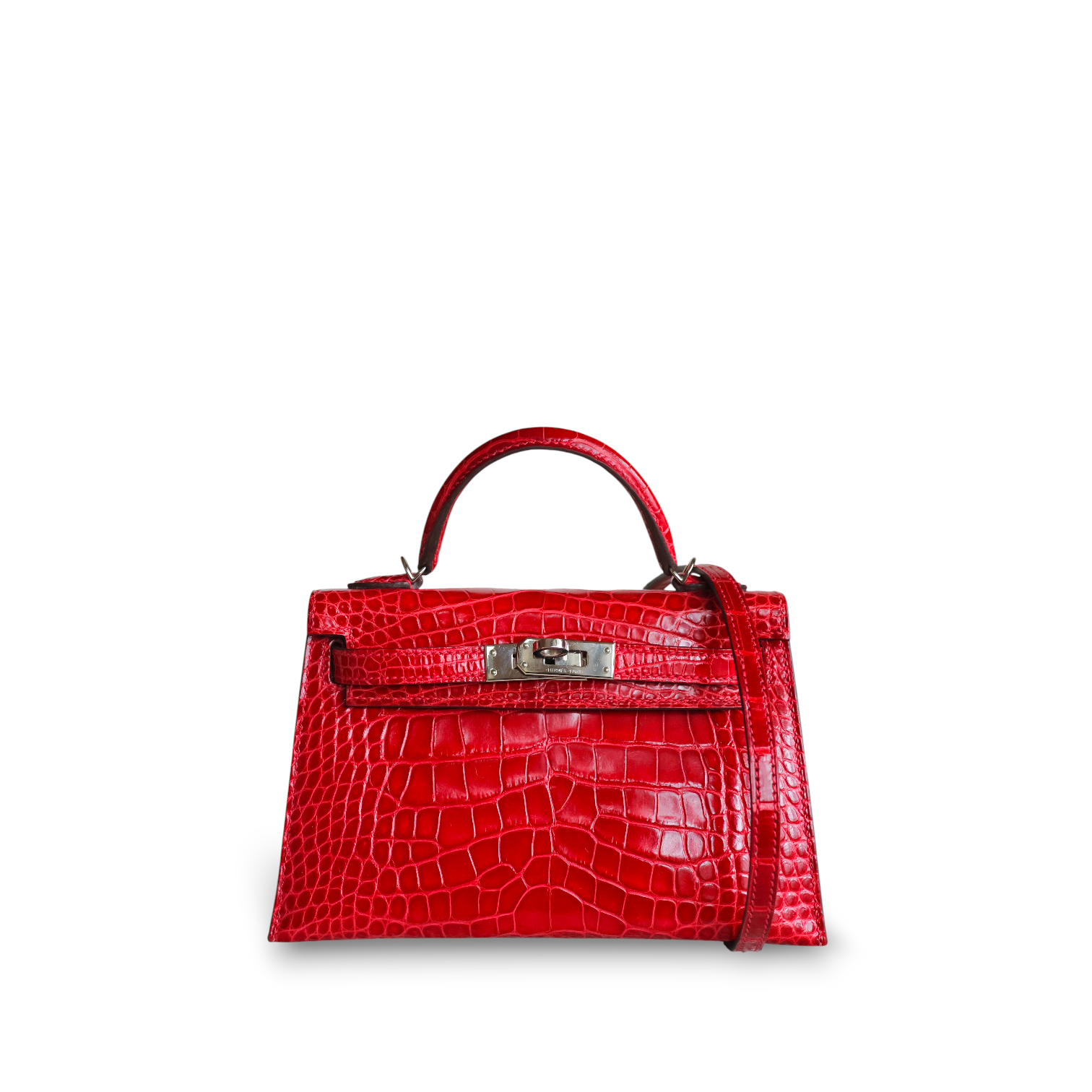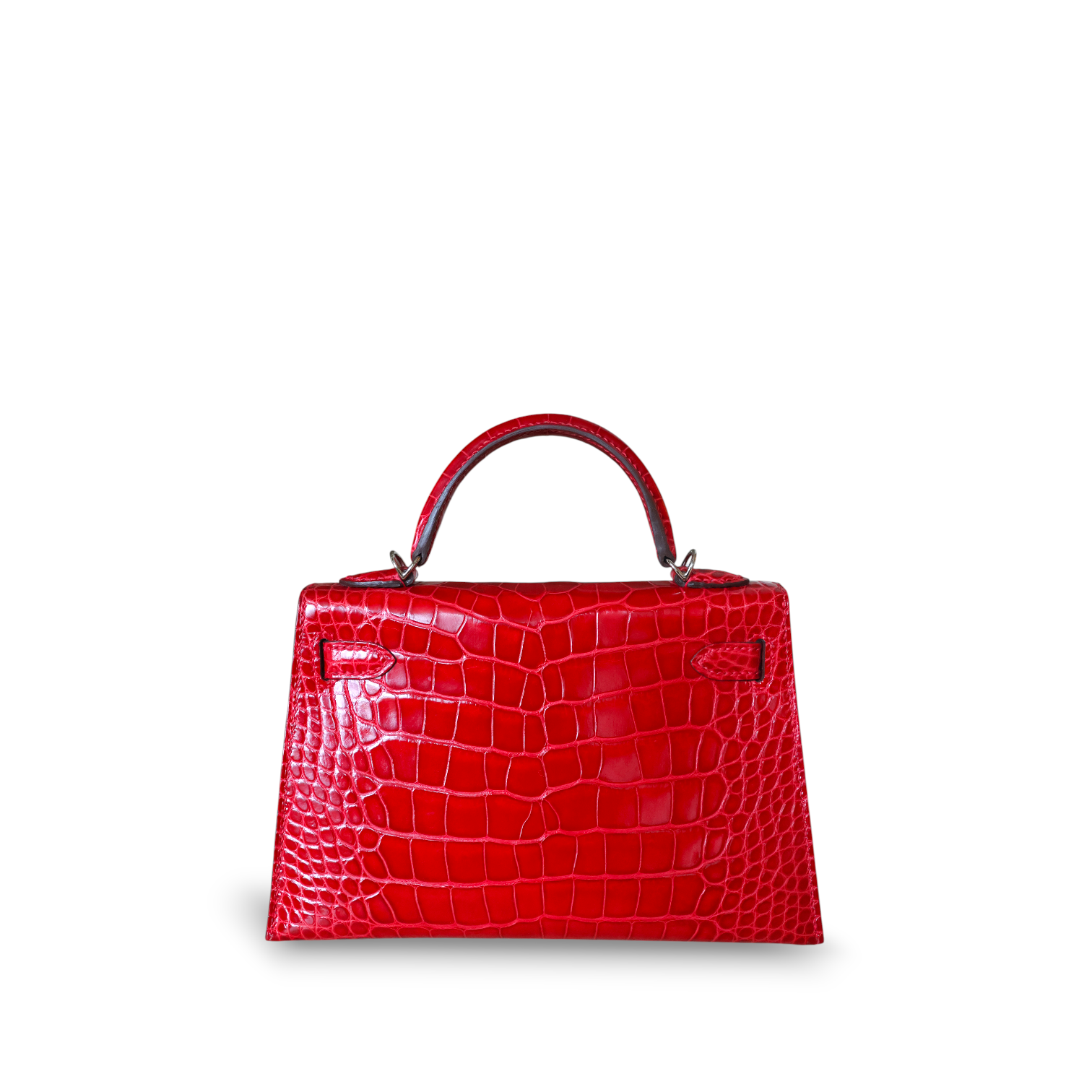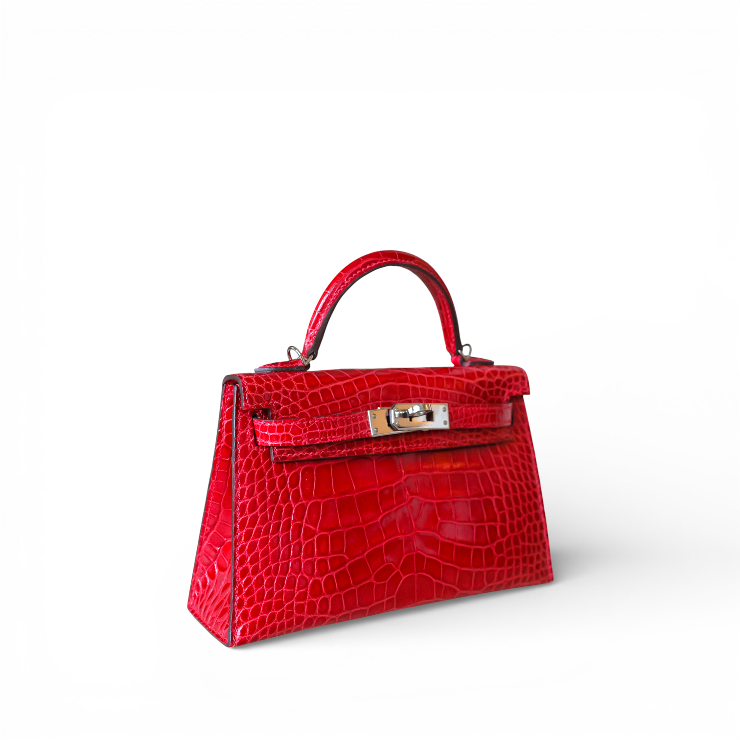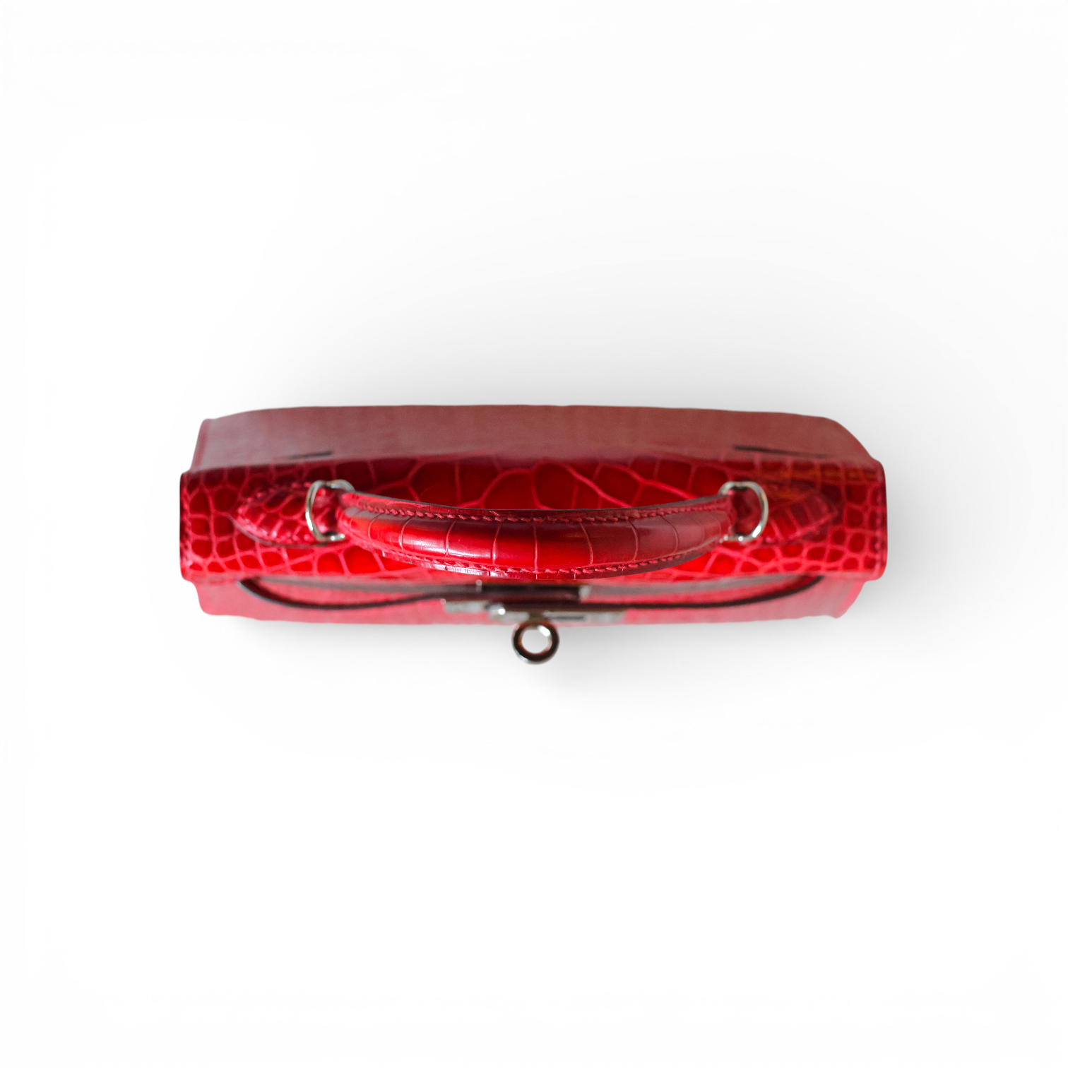 Icône absolue du luxe miniature, ce Mini Kelly signé Hermès incarne l’excellence artisanale et la rareté des cuirs exotiques. Confectionné en crocodile Porosus brillant, considéré comme l’un des cuirs les plus précieux de la Maison, il révèle une brillance profonde et une structure d’une finesse exceptionnelle.